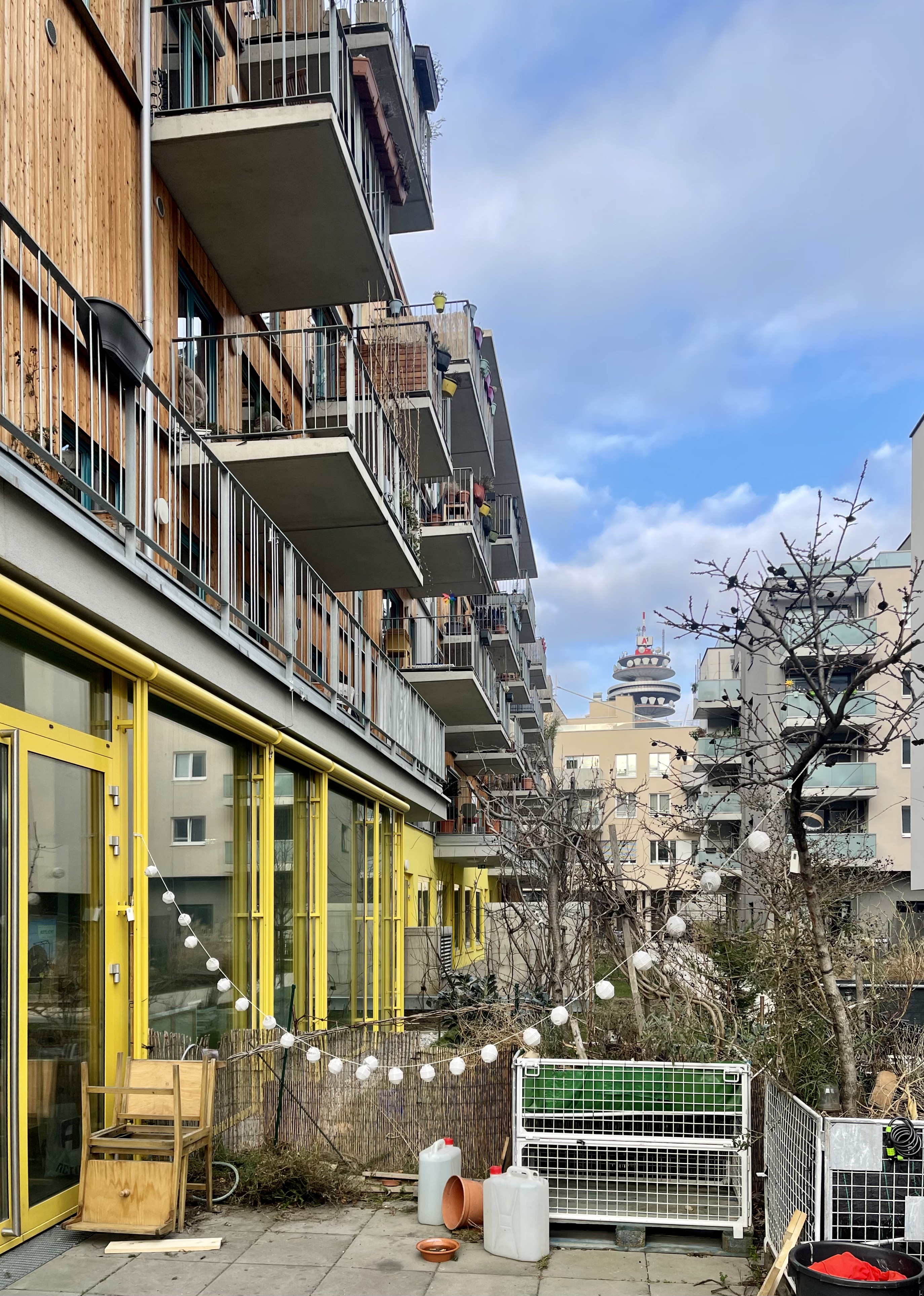 Sonnwendviertel is a residential district located at the centre of Vienna in close proximity to the Vienna Central Station. It is located at the former site of a freight station. The Helmut-Zilk Park is a central green space for the residential complexes. The district is majorly composed of quarters houses which are a form of compact social housing found in Vienna. There has been an effort to introduce a mixed housing scheme and different programs in order to create an improved urban spatial quality in the area. The area is primarily car-free and promotes soft mobility through initiatives such as pedestrian streets, cycles-on-rent and cargo bikes. There are no underground car parks. Instead, residents are provided with collective car parks in the form of multi-storied parking buildings. The multi-storey car parks are located near the railway line. They also act as a noise barrier between the active railway line and the residences.
